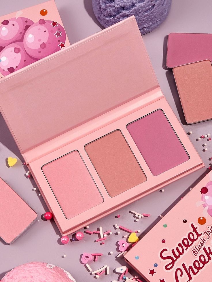 پالت رژگونه شیگلم مدل Sweet Cheeks در سه رنگ متفاوت و کاربردی طراحی شده است.